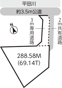 ◆地目 宅地 ◆用途 第2種住居地域 ◆道路 約3.5m公道 |